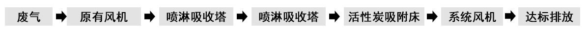 根據(jù)客戶需求和我司實(shí)地考察之后,最終采用‘兩級(jí)噴淋吸收法+活性炭吸附法’對(duì)其進(jìn)行處理。采用水噴淋一方面可以降溫,另一位方面能夠讓水吸收一部分的有機(jī)廢氣,降低后續(xù)活性炭吸附的負(fù)荷。